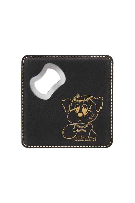 4" x 4" Square Laserable Leatherette Bottle Opener Coaster